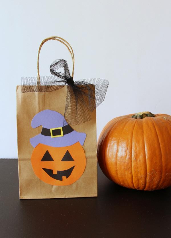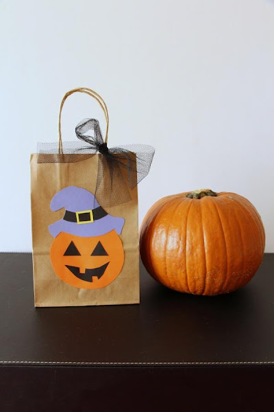 El modelo calabaza es una cucada, con cartulina y una plantilla sacada de internet hacemos una calabaza súpermona para decorar la bolsa. Graciosa, ¿verdad?