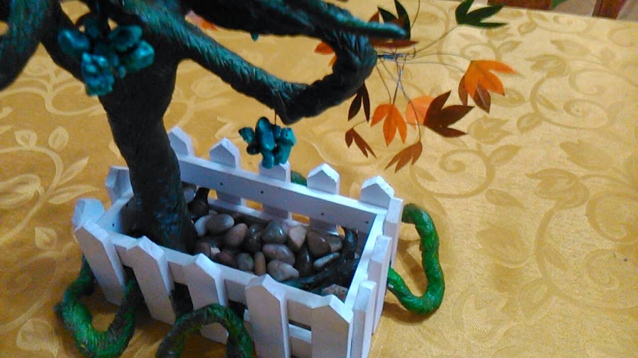 Les presento mi nuevo trabajo, lo llame Bonsai House hecho en Masilla epoxi. Simplemente tome un envase o masetero que tenia de un bonsai que se me seco hace un tiempo y lo transforme en la base p ...