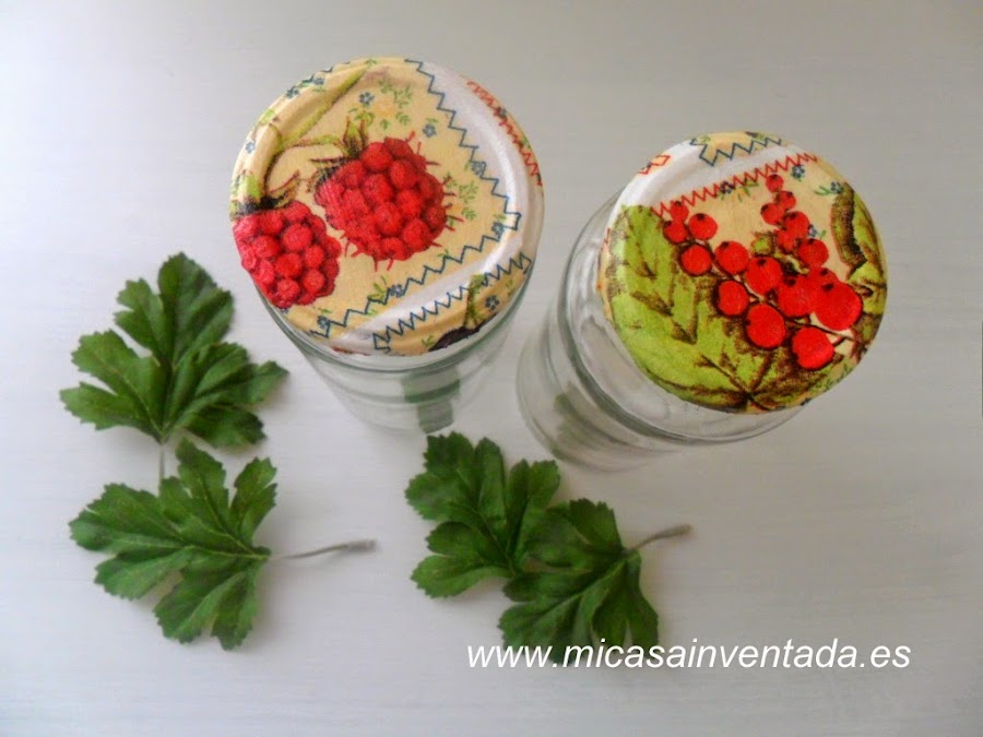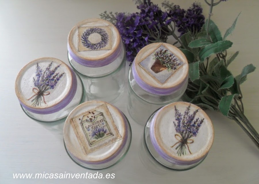 Tenia un montón de botes , guardados . Hice decoupage en las tapaderas .