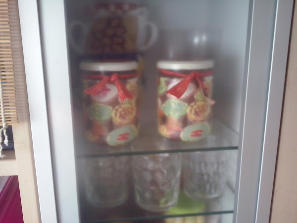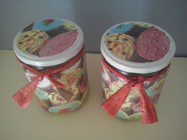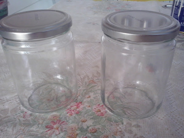 Tenía estos dos botecitos de cristal , que me vendrían de perlas para guardar las chuches y galletitas para cuando vengan visitas de peques y no tan peques, je, je..