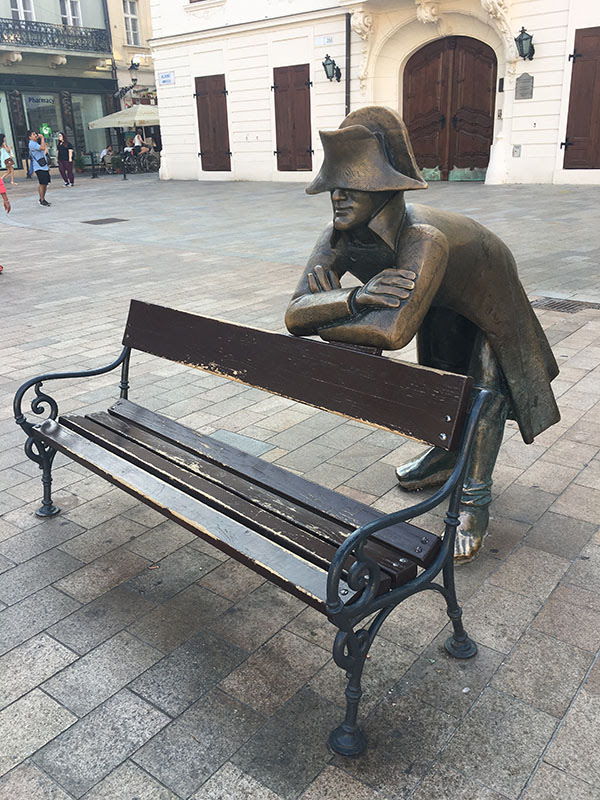 Otra de las estatuas más emblemáticas es el soldado napoleónico que está apoyado en uno de los bancos de la Plaza de Hlavne Namestie, uno de los lugares más concurridos de la ciudad.