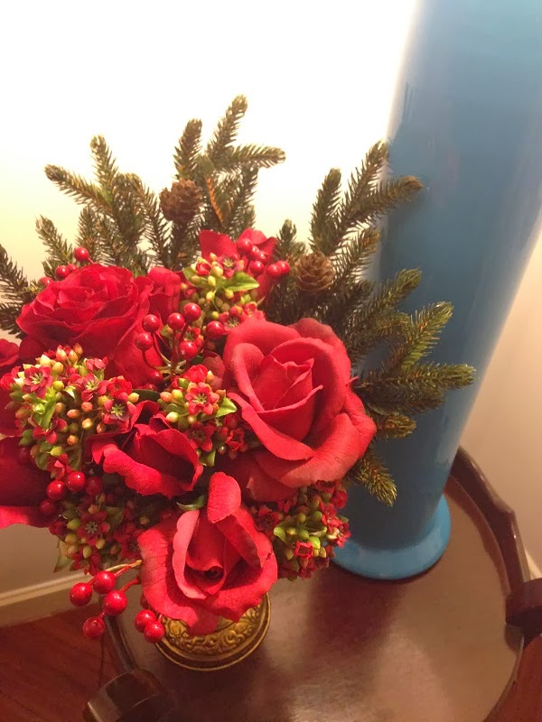 Nuestra clienta tenía la idea muy clara sobre los centros, así que la misión ha sido bastante fácil, un jarrón en color plata, otro de cristal y las flores en blanco y rojo.