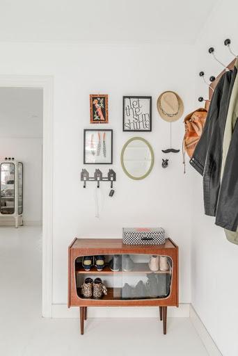 Teniendo en cuenta que en recibidor vamos a ponernos a punto para salir de casa no puede faltar un perchero para la ropa y un espejo. Cogemos la chaqueta, nos miramos a ver si está todo en su sitio y para la calle, ¿no? Pues no. Faltan las llaves y la cartera. ¿Cómo se van a pagar las copas si no? El recibidor es un sitio perfecto donde dejar las pertenencias al entrar y al salir de casa. Lo puedes hacer en una bandeja encima de una mesita auxiliar, o en un colgador de llaves que puedes poner detrás de la puerta. El objetivo es tener la costumbre de tenerlas siempre en el sitio perfecto para no olvidarlas y ese sitio es el recibidor. A nosotros nos gusta mucho este espejo de Ikea ya que tenemos las dos cosas unidas: espejo y colgador para las llaves.
