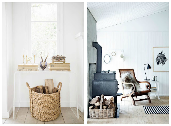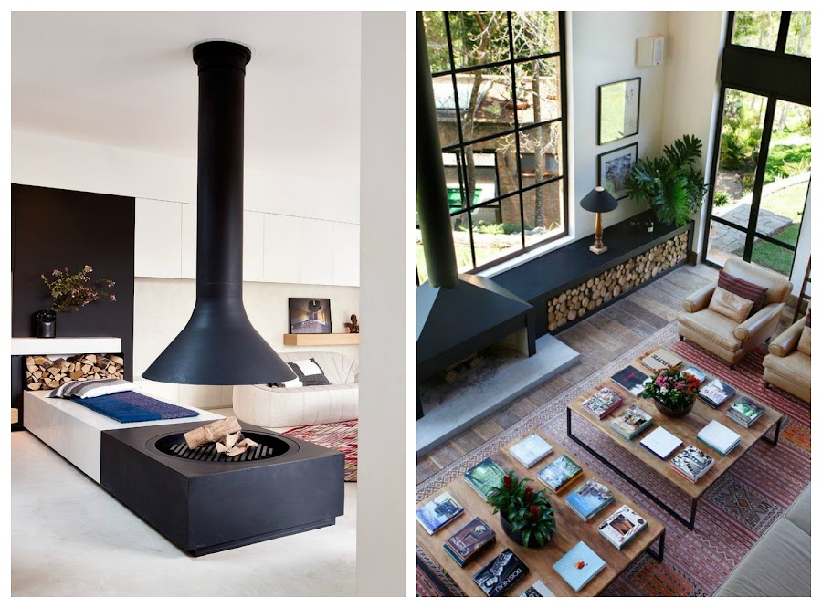 Pero... ¿y los troncos? ¿cómo se almacenan?, pues mira las siguientes fotos, verás que ideas tan buenas. No sólo prácticas sino totalmente decorativas. Vamos, que estoy pensando en aplicar alguna de esta ideas en el salón... y eso que no tengo chimenea... jejejeje...