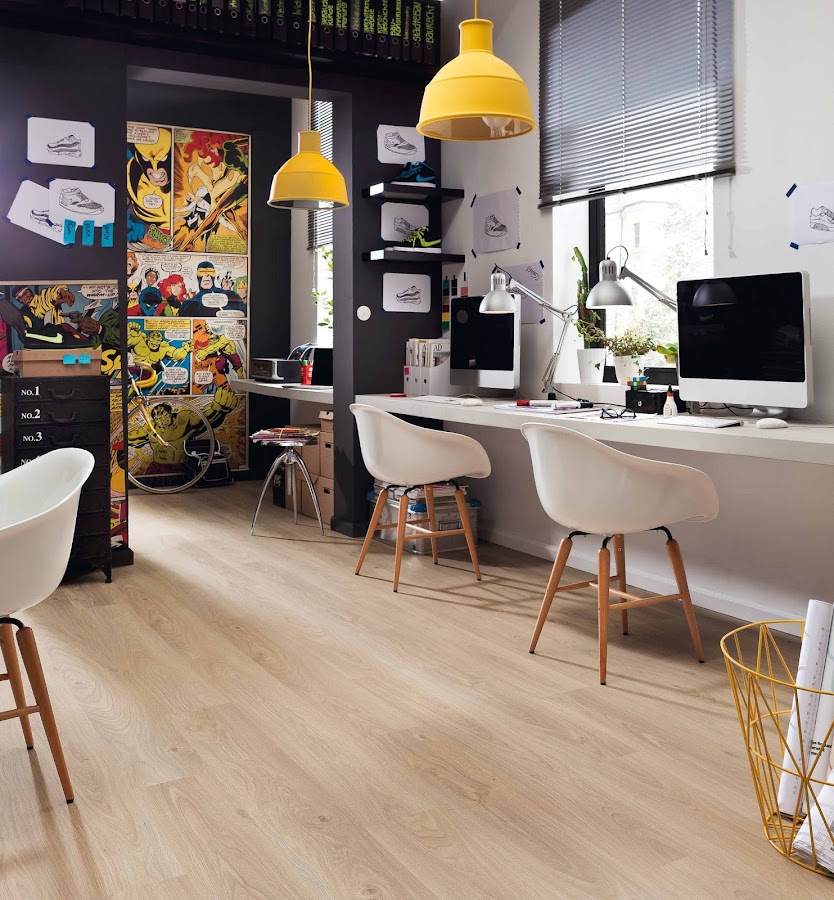 hace unos meses puse el suelo de vinilo , y ahora lo he pintado en blanco y gris