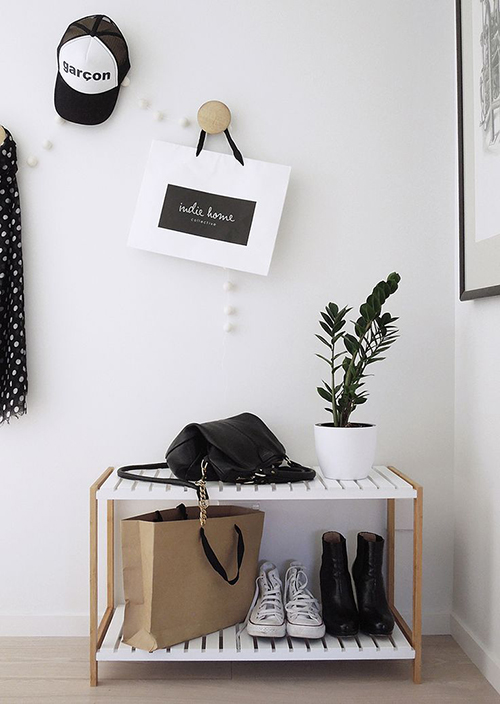 Así que he empezado a buscar propuestas por la red para ver si me llega algún tipo de inspiración. He leído que delante de la puerta no se puede colocar un espejo, así que a lo mejor no coloco ninguno. Me gusta la idea de unas estanterías y un taburete abajo, o algún mueblecito. Un perchero también me gusta, pero seamos sinceros, una cosa es las fotos de internet y las otras las de tu casa, donde no tienes unos preciosos zapatos ni un precioso abrigo que más bien es decorativo y no de uso personal.