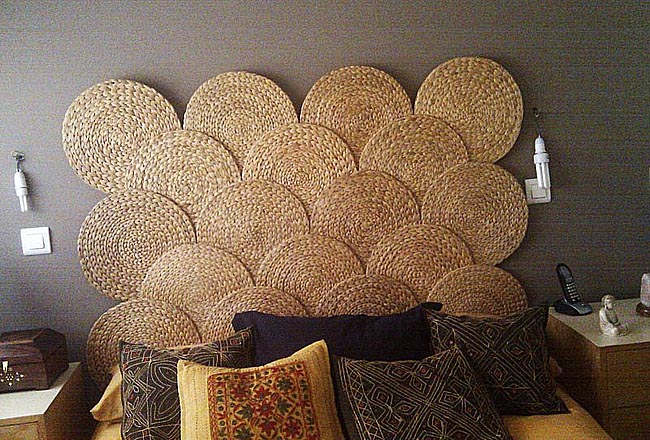 uniendolos entre si han conseguido un cabecero original y realizado con tejidos naturales..........
