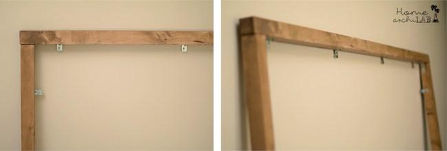 Usé unas escuadras más pequeñas atornilladas por el perímetro de la parte trasera del marco para unirlo al cabecero existente.