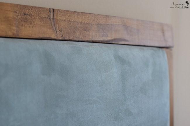El resultado del tapizado me dejó muy contenta por lo sencillo que fue, pero realmente fue en este momento cuando vi claro que necesitaba el marco de madera. También fue aquí cuando decidí que no le pondría botones tipo capitoné porque era lo que más me había cansado del cabecero original. Necesitaba una imagen completamente nueva.