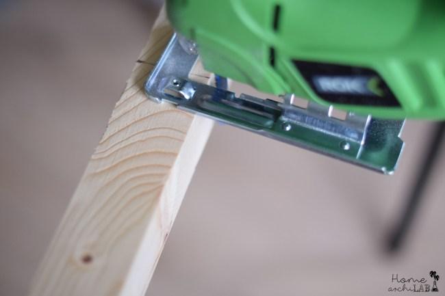 Usé una sierra eléctrica porque me costó bastante barata y para todos mis trasteos me venía muy bien tenerla, pero no es en absoluto necesaria. Al ser una madera blanda puedes cortarla con una sierra y algo de paciencia.