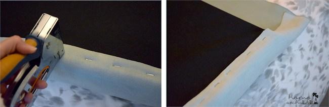 Una vez bien situado y dejando que solo sobre tela por un lado, fui doblando y grapando por detrás.