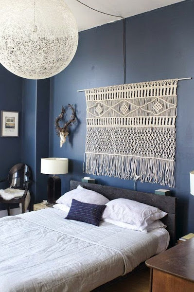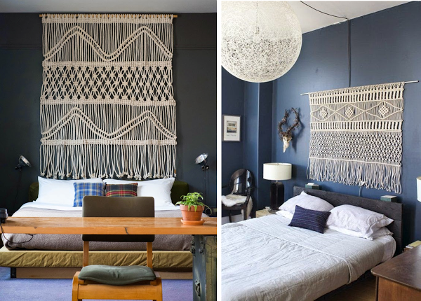 Aunque me gusta para infinidad de trabajos decorativos y como accesorios de moda, en tapices adornando paredes me encanta y desde luego como cabecero de cama me parece una opción repleta de encanto.