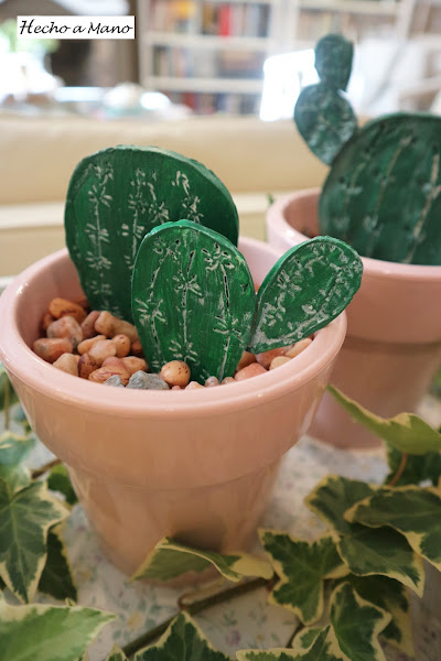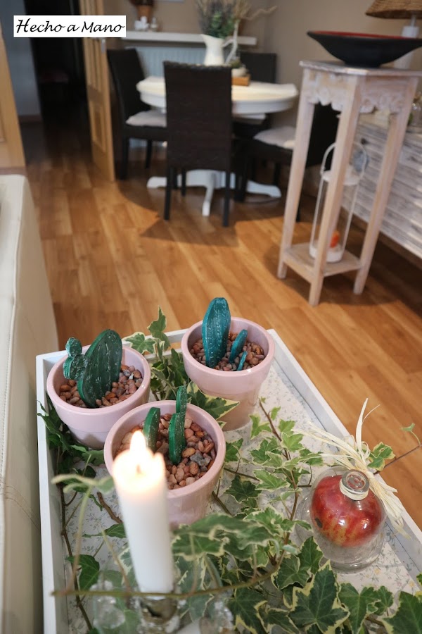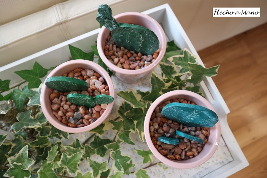 Los cactus van "plantados sobre pequeñas piedras que también tienen su encanto y su punto decorativo en el conjunto. Todo cuenta.