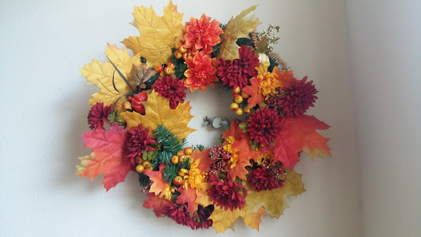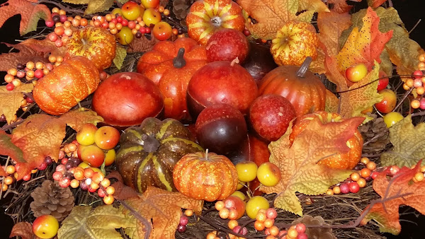 Toma en cuenta la decoración, es otoño y la Corona de Thanksgiving debe dar la bienvenida en la puerta principal. Compra un círculo de pinabete artificial o de raíz entrelazada, cubre con follaje otoñal, ramitos de frutillas y calabacitas, coronando con crisantemos rojizos.