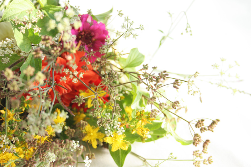 La amama nos ayudó a recoger unas flores y ponerlas bonitas ¡Un ramito para que le alegre la casa y le huela bien! Con flores de la huerta, y silvestres ;)