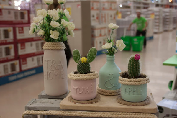 Leroy Merlín quiso contar conmigo para participar en este evento realizando un taller: Reciclar una botella de cristal convirtiéndola en un florero y maceteros para mis cactus.
