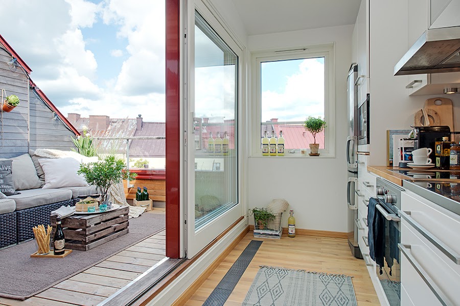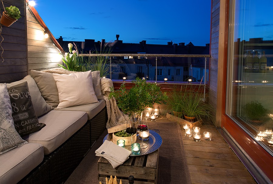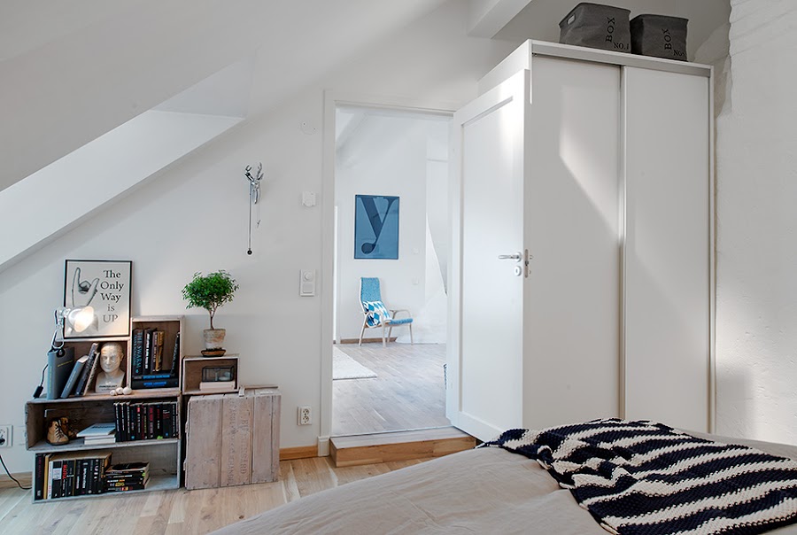 En estos tiempos cada vez esta mas de moda reciclar, no se si sera por la crisis, el respeto al medio ambiente, tendencia decorativa, o todos estos factores unidos. Este miércoles os muestro un apartamento escandinavo en el que se han reutilizado cajas como parte del pequeño mobiliario, tanto en la fantástica terraza, como en el salón y dormitorio.