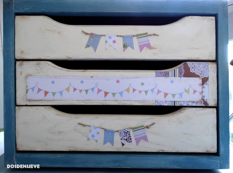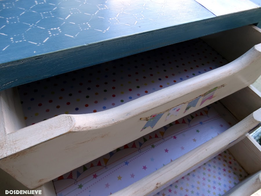Al final, terminamos cambiando la decoración de dos de los cajones para darles un aire más desenfadado y quitarle seriedad a la cajonera.
