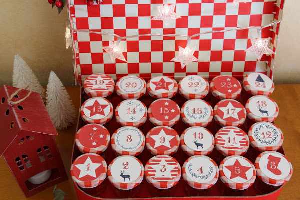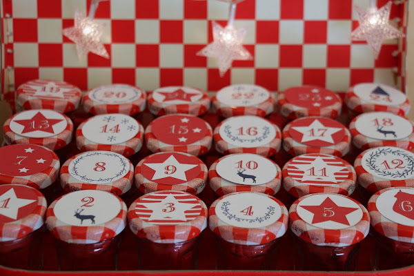 En los 24 mini botecitos de mermelada Bonne Maman he puesto papelitos con actividades, algún chocolate y alguna que otra sorpresita, para que el mes de diciembre sea muy ilusionante.