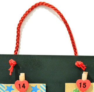 Trenzamos un cordón y es nos sirve para colgarlo.