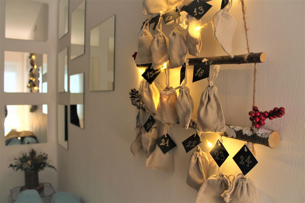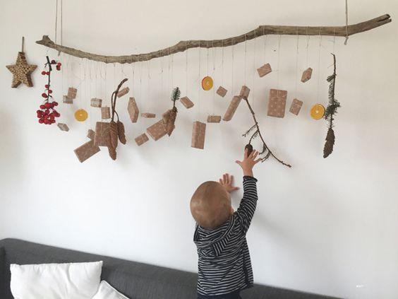 Me encanta esta opción! Una gran rama encima del sofá y no sólo tenemos un calendario de adviento, además tenemos un objeto más decorativo para estas navidades.