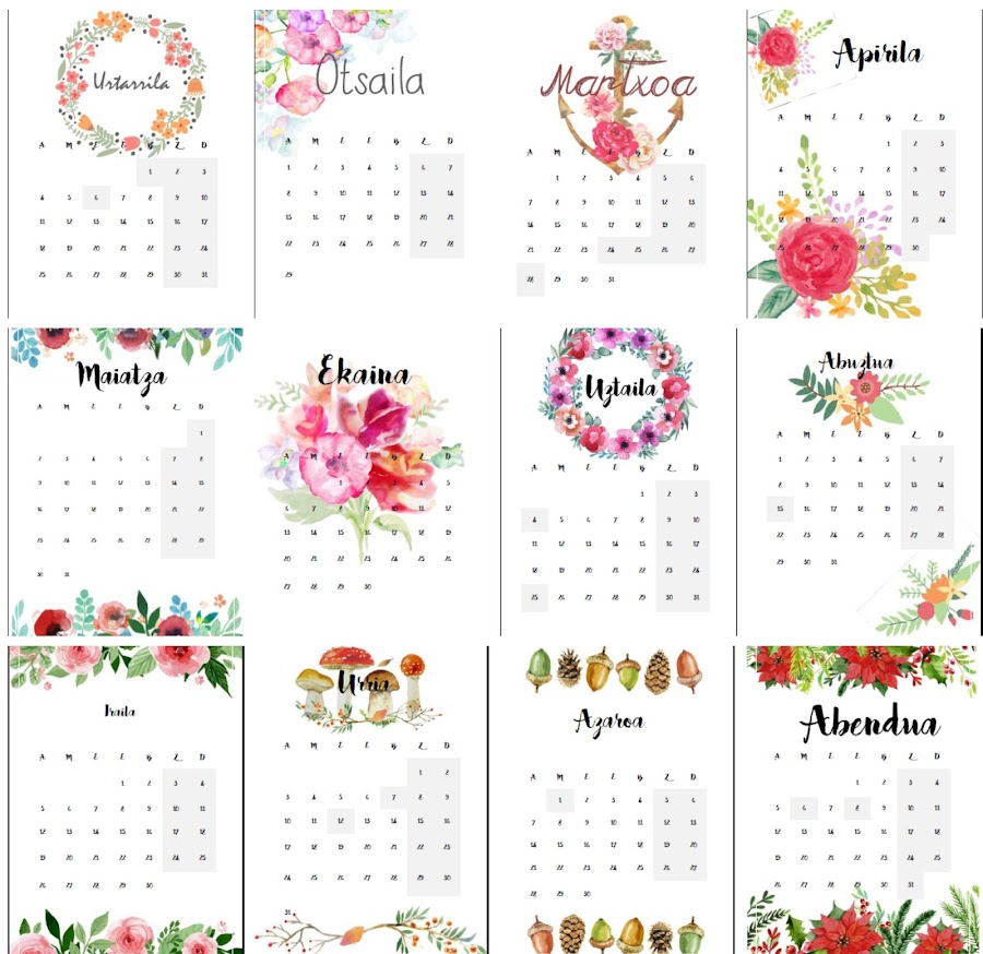Estas son las opciones que os ofrecemos si también queréis que vuestro calendario sea de caeros de espaldas de lo bonito que es!