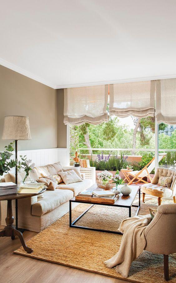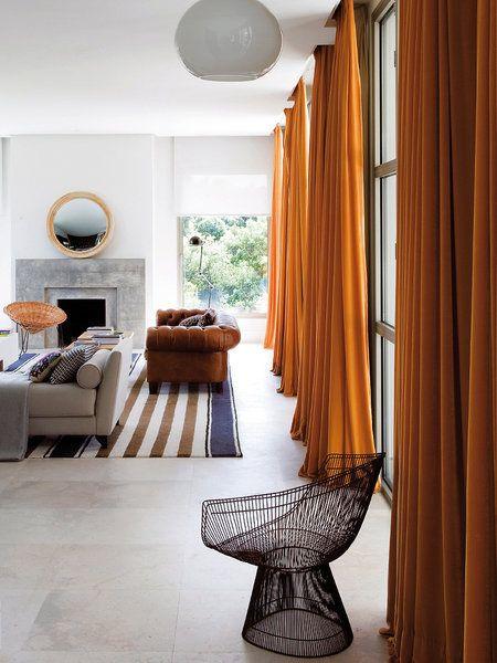 7. Esconde tus ventanas. Hoy en día nos encantan las casas con amplios ventanales, los espacios abiertos y las vistas, pero si colocas unas buenas cortinas crearas mayor sensación de calidez y parecerá que resguardas tu casa del exterior.