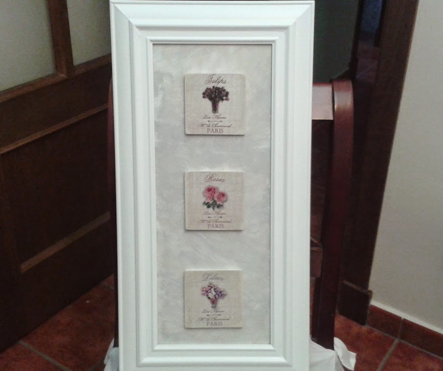 la base la pinte en blanco y luego con pincel seco hice el efecto trapeado, como yo le llamo