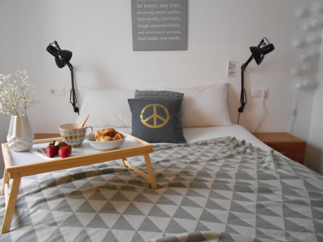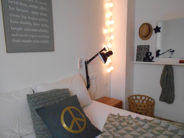 Guirnalda de luces 22? * Flexos 9,95?/u * Funda nórdica (DIY 2 sábanas) * Cojín punto (Handmade).