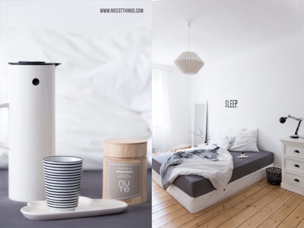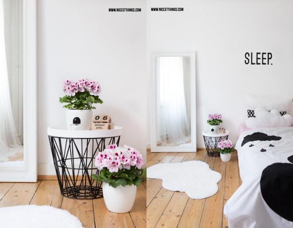 La sabana bajera en color rosa empolvado se sustituyó por una gris y la funda nórdica con dibujos de nube por otra mas invernal con la imagen de un lobo. Además se han cambiado los cojines sobre la cama ya no vemos el delicado cojín de nube.
