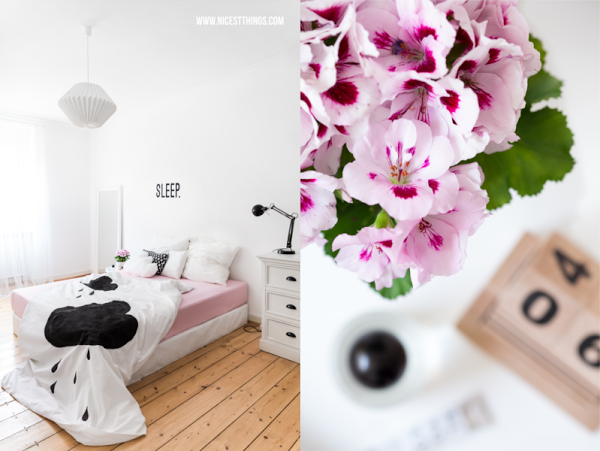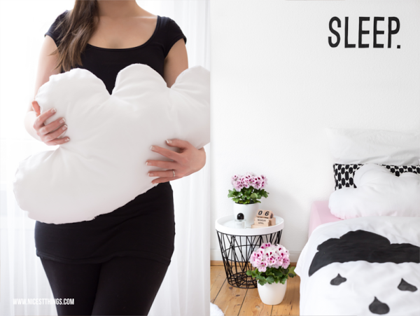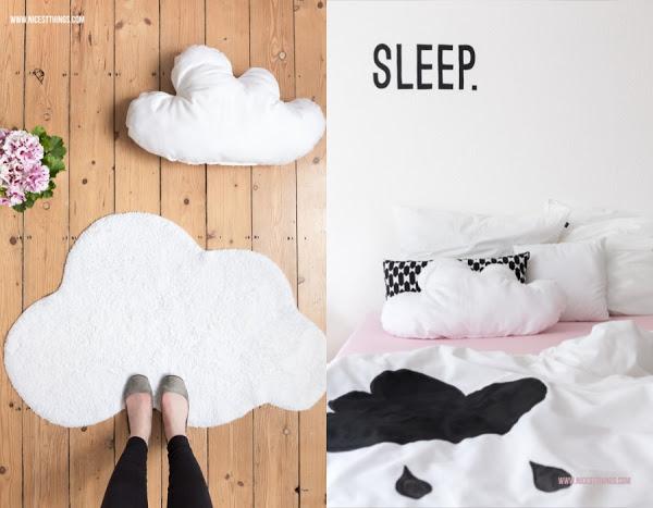 Un cojín con forma de blanca nube y un pequeño vinilo en la pared completan los sencillos cambios que se han realizado en este dormitorio para adaptarse a una nueva estación.