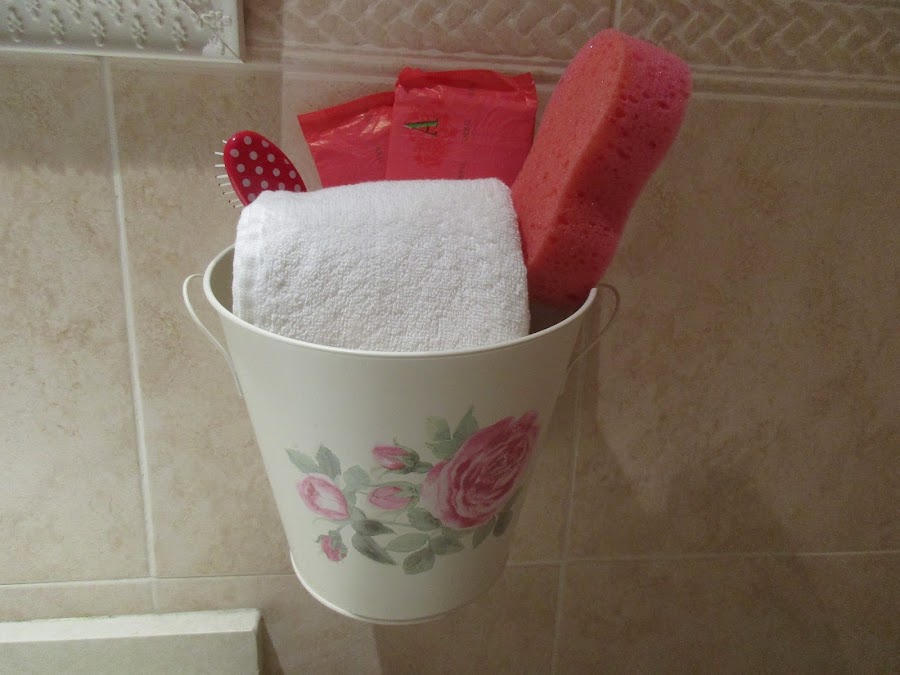 I always liked to ser how changing the use of the furniture to vive them a new utility. Suddenly a bottle was lamp or a door became a table.So wheny I buy bath accesories I wanted something diferentes than usual. I buy a these buckets- flowerpots and this was the result.
