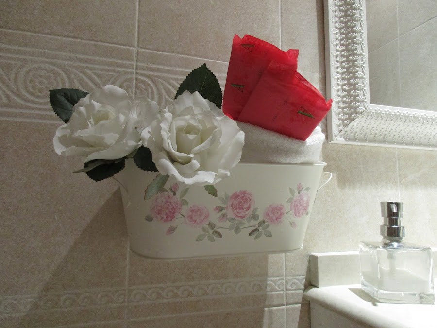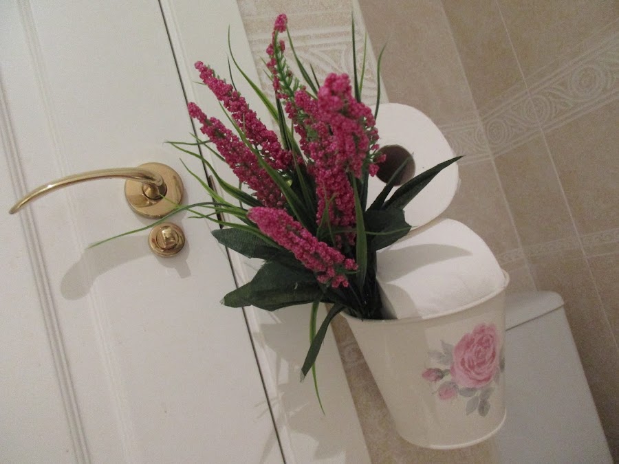 Siempre me gustó ver cómo cambiaban el uso de muebles o accesorios antiguos o nuevos para darles una nueva utilidad. Ver como de repente un cesto era una lámpara,una puerta una mesa o un radiador antiguo se convertía en una pata de una mesa. A si que cuando llegó la hora de comprar los accesorios de los baños (toallero,varilla del papel higiénico...etc) pensé que quería poner algo diferente a lo habitual a si que compre unos cubos-maceteros y así fue el resultado.