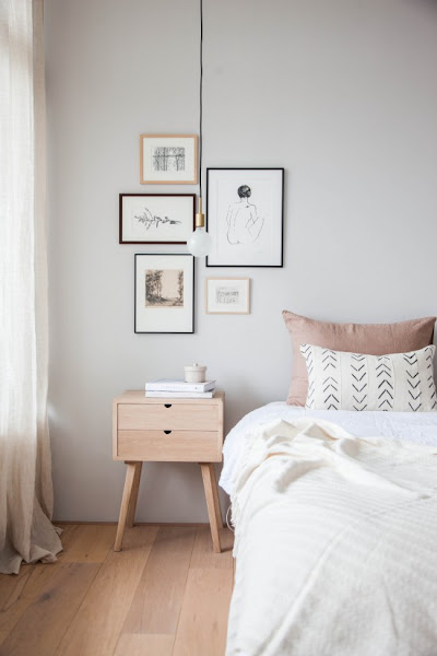 Muchas veces que compartimos antes y después donde el cambio es muy notable porque se ve claramente que ha habido un trabajo de reforma parcial o integral. Pero el caso de hoy es muy diferente, se trata más de un cambio de look de un dormitorio que seguro que muchos pensáis: bueno, no estaba tan mal el antes. Y así es, pero cuando veais el cambio de decoración vasi a ver claramente que sí podía mejorarse. Con pocos cambios, pero muy efectivos, que os vamos a mostrar por partes, porque merece la pena no perder detalle. La diferencia más notable es la de quitar el papel de pared que, aunque era bonito, recargaba quizá demasiado la habitación. Por eso optaron por pintar con una gama cromática neutra y sencilla donde los colores claros son los protagonistas. El después nos parece que transmite mucha serenidad. El mobiliario escogido es de líneas depuradas y de madera con color natural, ¡precioso! Unas bombillas colgantes en las mesitas de noche sustituyen los flexos y le dan un aspecto más chic.