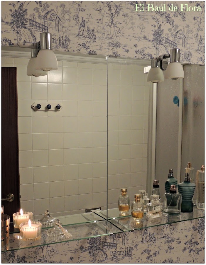 Los espejos con baldas son de Ikea y cuestan 8€ cada uno, las lamparitas las tenía guardadas de otra casa, así que reutilizadas.
