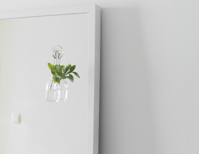 El espejo es el mismo, aunque anteriormente tenía el marco con aironfix en color madera, así que le quité el aironfix y le puse el mini jarroncito que me compré en La variété, el botilet, del que estoy sumamente enamorada.