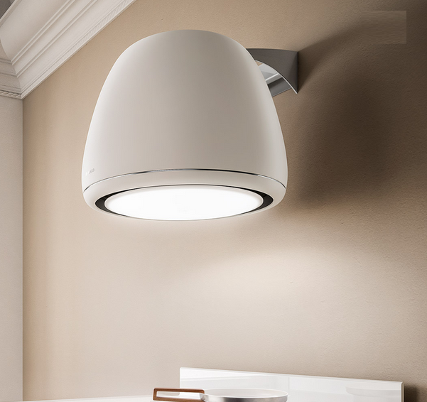 Audrey es una luz y un elemento decorativo brillante. Proporciona belleza y elegancia, así como una efectiva función de aspiración. Opción de montaje en pared. Mando a distancia incluido. LED de iluminación difusa. Acabados: colores y acero inoxidable pulido.