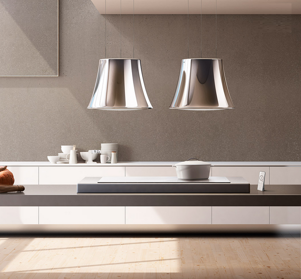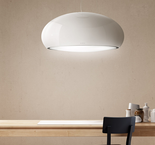 La forma del modelo Edith está diseñada con el fin de ser vista en su conjunto. Es una campana de luz suspendida, reinventada en cuanto a diseño, mejora aún más su funcionalidad gracias a la aspiración perimetral y recirculante. En 2 versiones, para pared y para isla.