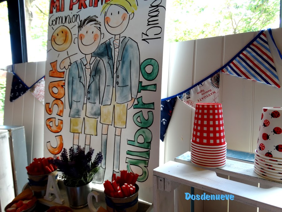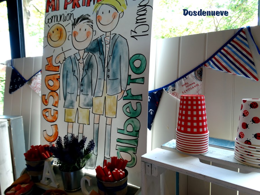Una gran acuarela, realizada sobre una plancha de cartón piedra, presidía el candy bar de la Comunión de Alberto y César (amigos inseparables desde los 3 años).
