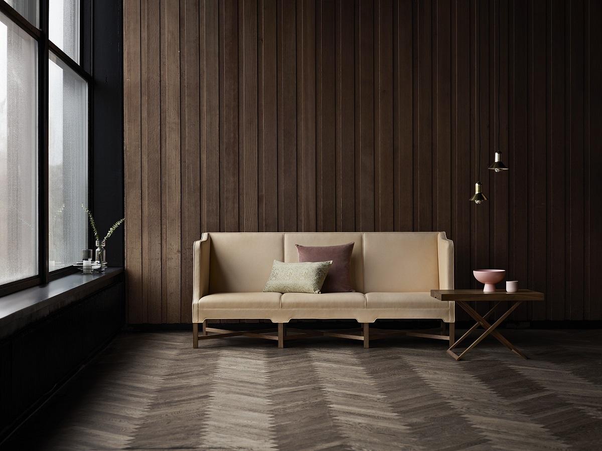Ya en 1930, Klint abrió un camino para el diseño danés moderno, demostrando su confianza estilística con el sofá de laterales elevados, que fue encargado originalmente para la oficina del primer ministro danés ThorvaldStauning en el Palacio de Christiansborg, sede del Parlamento.Carl Hansen & Son recupera ahora el elegante sofá y lo incluye en su colección de piezas del famoso diseñador, que engloba la emblemática FaaborgChair de 1914, el innovador PropellerStool de 1930 y la reconocida Safari Chair de 1933.