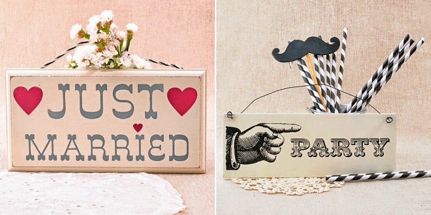 Escritos con tiza sobre pizarra o pintados sobre madera, estñan orientados sobre todo a bodas al aire libre. Os muestro algunas ideas.