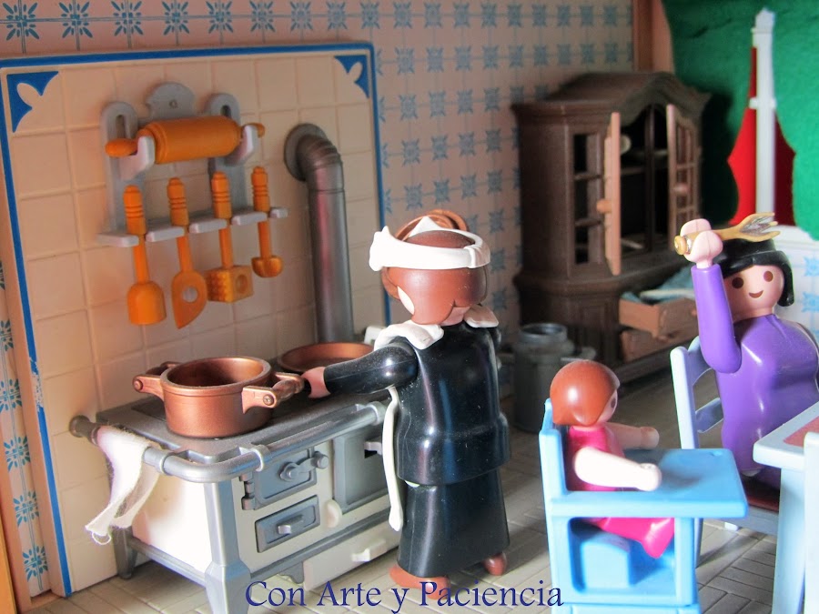 Como podéis observar, la cocina está equipada hasta el más último detalle, con cacerolas que imitan al bronce, paños, cubertería etc.
