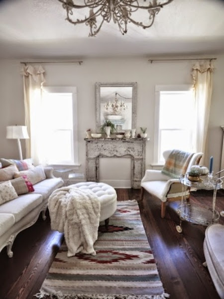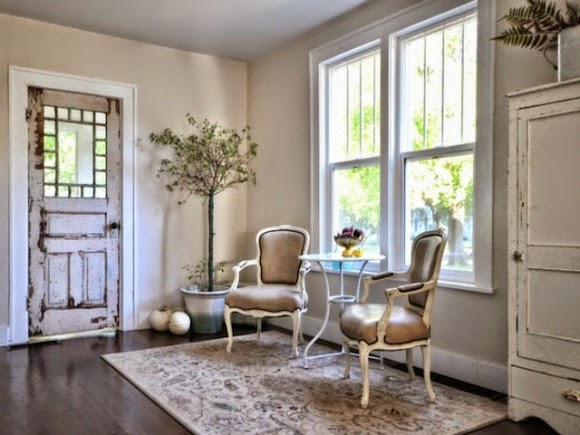Se arreglo y decoro con muy buen gusto y sencillos detalles, me gusta todo, el color de las paredes, los muebles desgastados, las puertas decapadas, los suelos, los pequeños detalles. Fijaros en la cocina, con ese mueble pintado de verde agua que la hace especial y como están colocado los platos y que me decís del lavabo del baño, tan diferente a los de ahora ó la entrada con esos dos sillones delante de las ventanas sobre alfombra en tonos claros ó la lampara de araña sobre la mesa del comedor rodeada de sillas en colores pálidos y el salón me encanta sencillo y natural a la vez que sofisticado.