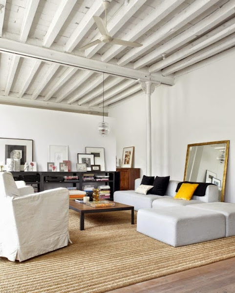 Buenos días a todos y a todas, hoy os traigo esta casa escandinava con look industrial, es una nave convertida en un loof que no le falta de nada, fijaros en los altos techos y las vigas pintadas de blanco, las ventanas todas iguales siguiendo la estética de los espacios industriales, se coloco un suelo de madera clarito que le da un aspecto limpio,la alfombra de fibra de coco con todos los muebles y objetos decorativos son sencillos. Para separar el dormitorio del salón se coloco un armario que por un lado hace de pared y por el otro de vestidor y la cama va sobre otra alfombra de fibra de coco idéntica a la del salón. La cocina se instalo en otra habitación con muebles de aspecto industrial , sigue la misma linea que el resto del loof. ¿Os gusta? ¿Viviriais aquí?