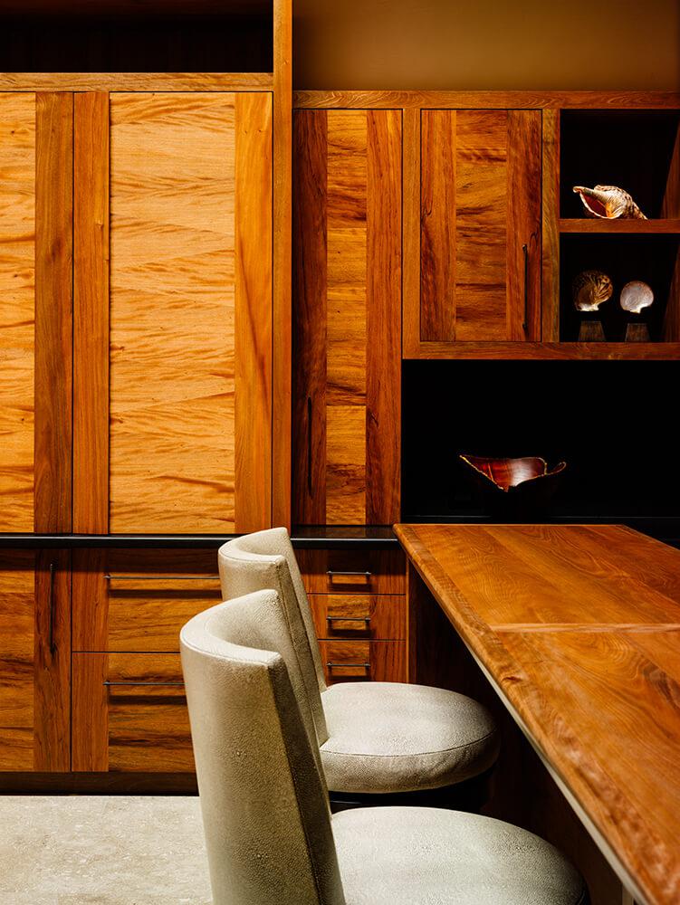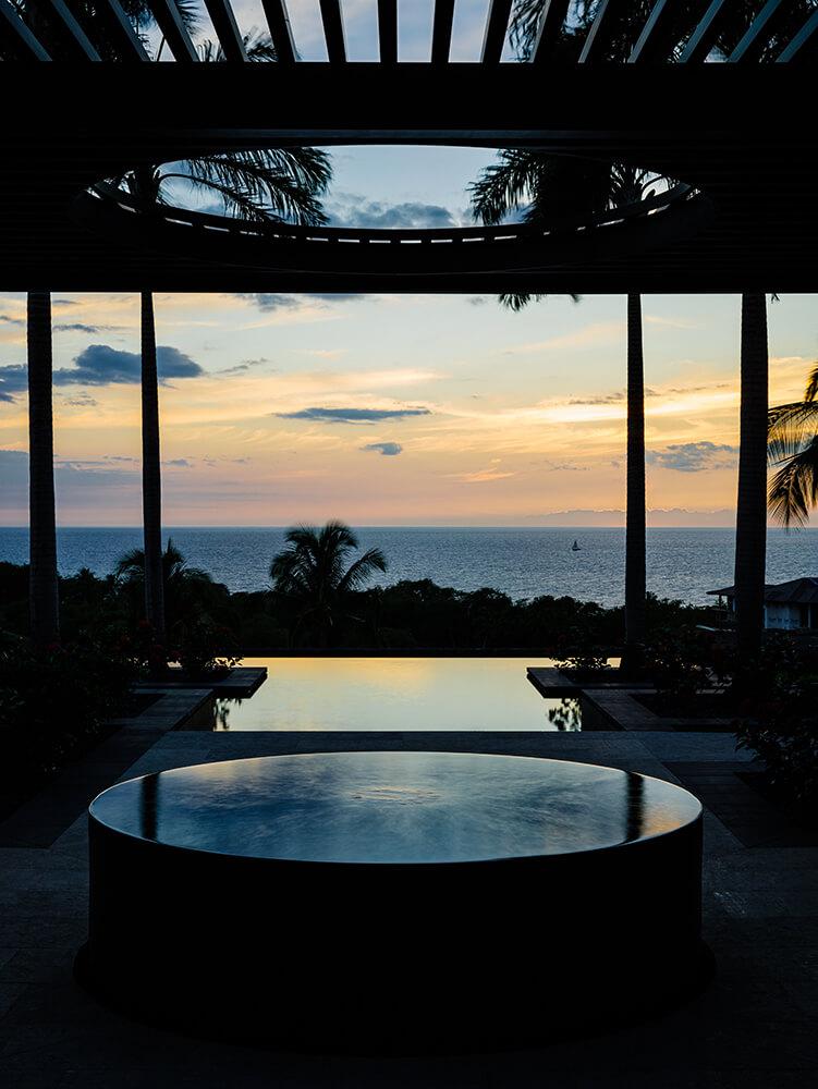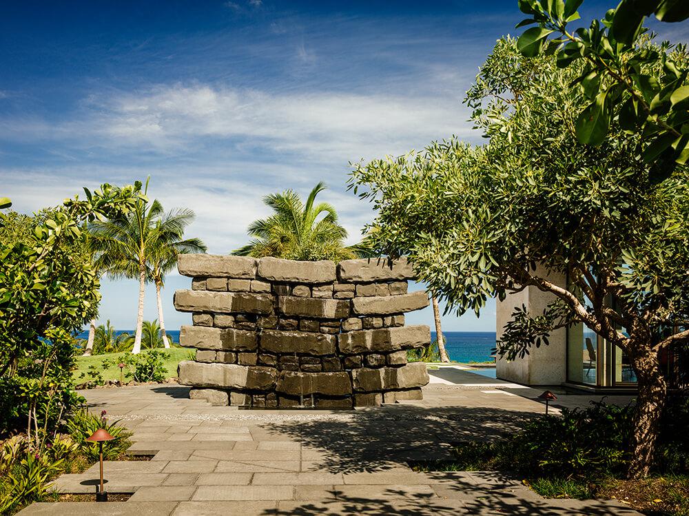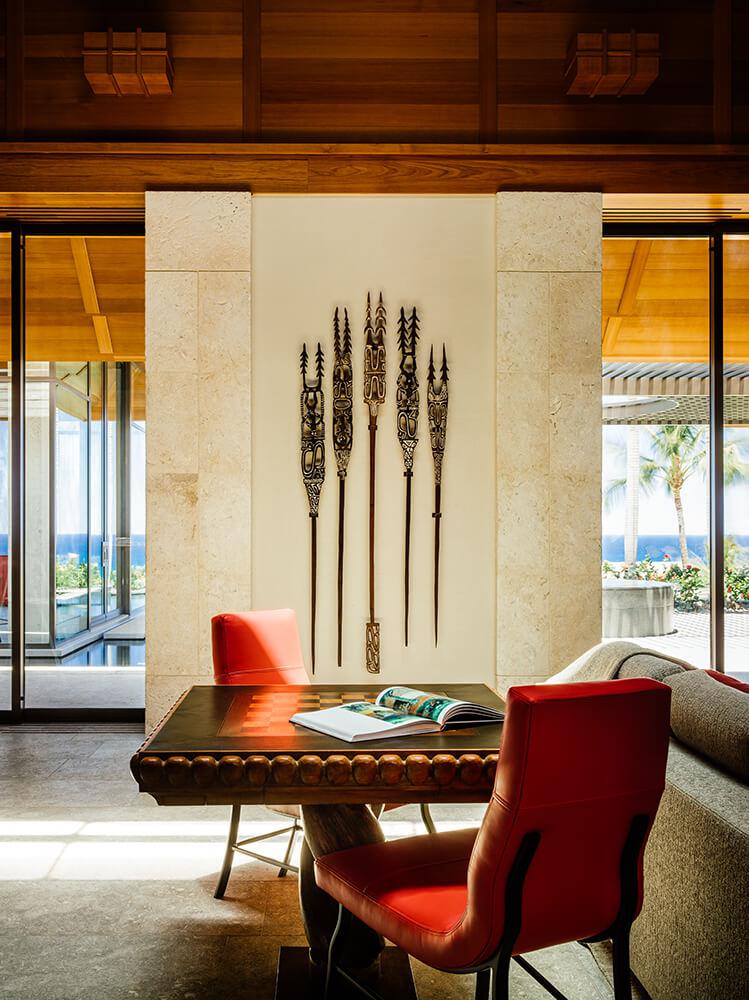 Esta residencia privada se encuentra en el complejo turístico de Mauna Kea, en la isla de Hawai, un lugar lleno de recuerdos para el cliente que recuerda las vacaciones familiares al famoso hotel. Los clientes comparten una afinidad por Hawai y la Polinesia, por el arte y el diseño modernos, y por la belleza de los materiales naturales y la artesanía.Estilo y entorno