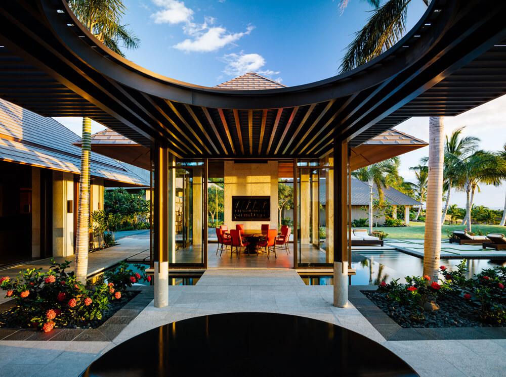 La solución de diseño equilibra las formas tradicionales, incluidos los prominentes tejados a cuatro aguas identificados en las directrices de diseño de esta comunidad costera, al tiempo que traduce el espíritu de las culturas polinesias a través de un sentido moderno de la moderación.En un lugar privilegiado por la naturaleza, inmediatamente por encima de Kauna‘oa Bay, esta casa de lujo está organizada como una serie de modernos pabellones tropicales, que juntos conjuran la impresión de un pequeño pueblo.