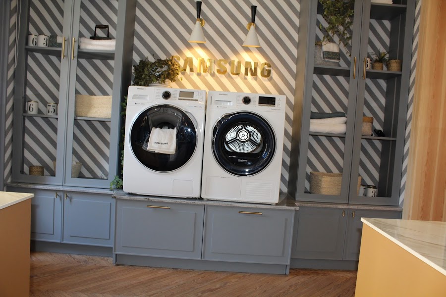 Siguiendo el recorrido pase al Salón- Cocina también un espacio Samsung y diseñado por Beatriz Silveira, una cocina funcional pero elegante.