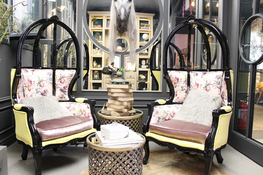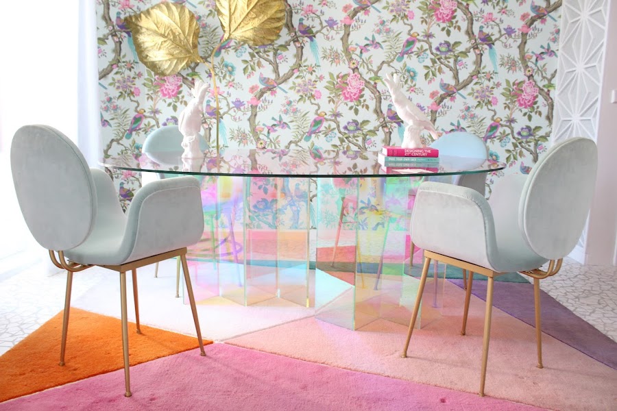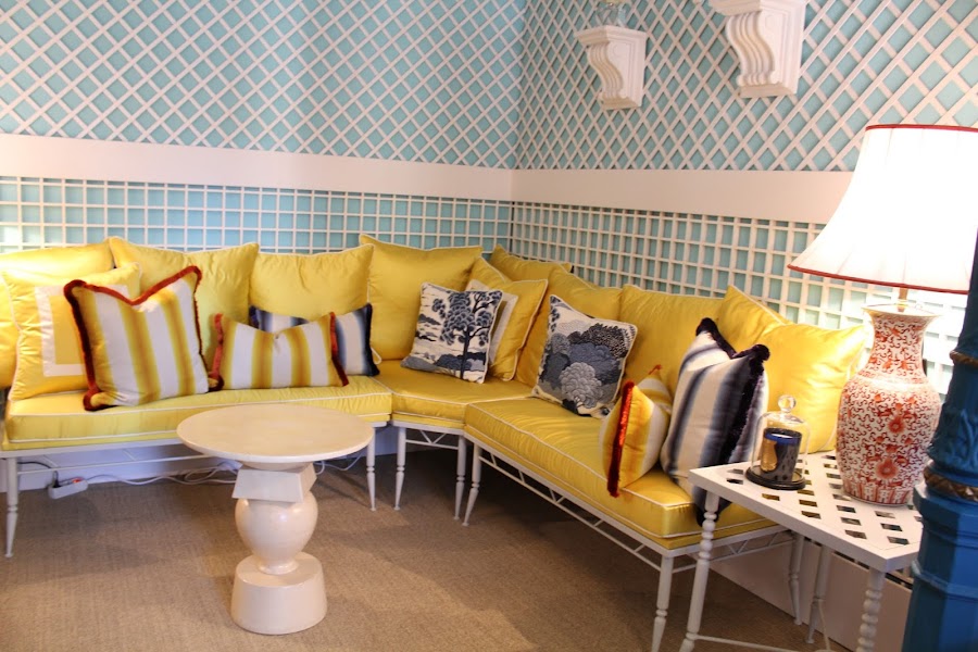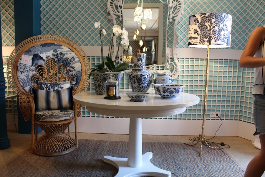 De la cocina pasamos a una Sala de estar "The Coco Pavillion" espacio Yodona diseñado por Patricia Fernández Castro con una combinación de piezas clásicas con una esquina llena de color.