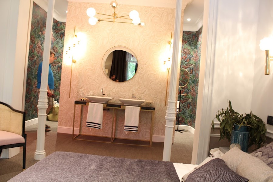 La joya de esta edición sin duda es este baño "Despertar de los sentidos" de Nuria Alía que simplemente es un estilo único que con las diferentes tonalidades suaviza la opulencia sin perder el glamour, ademas los tonos pastel dan sensación de serenidad en el ambiente.