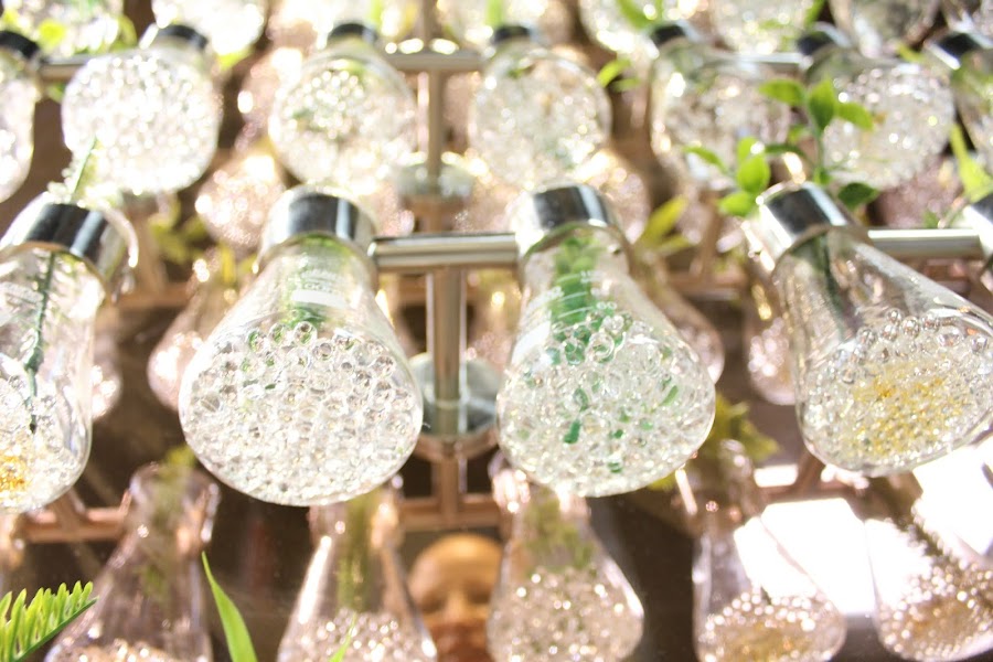 Una de las ideas que más me gusto fue la decoración de esta pared, que a la vez de decorar también es un punto de luz.